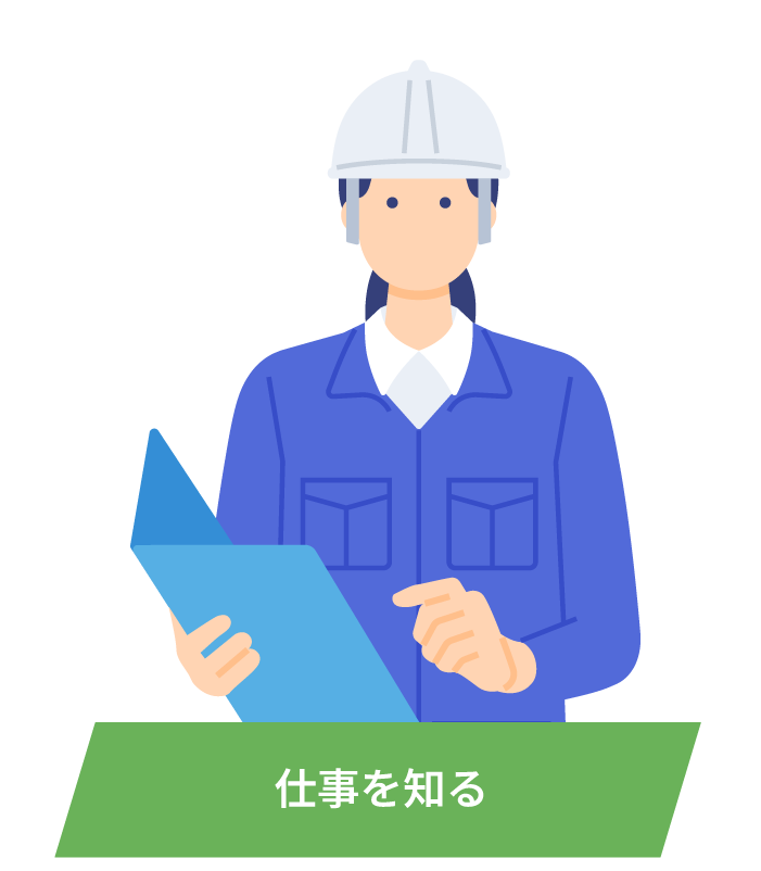 ますが、教えてもらいながらいろんな現場を経験して、基本的な技術を身につけていきます。
